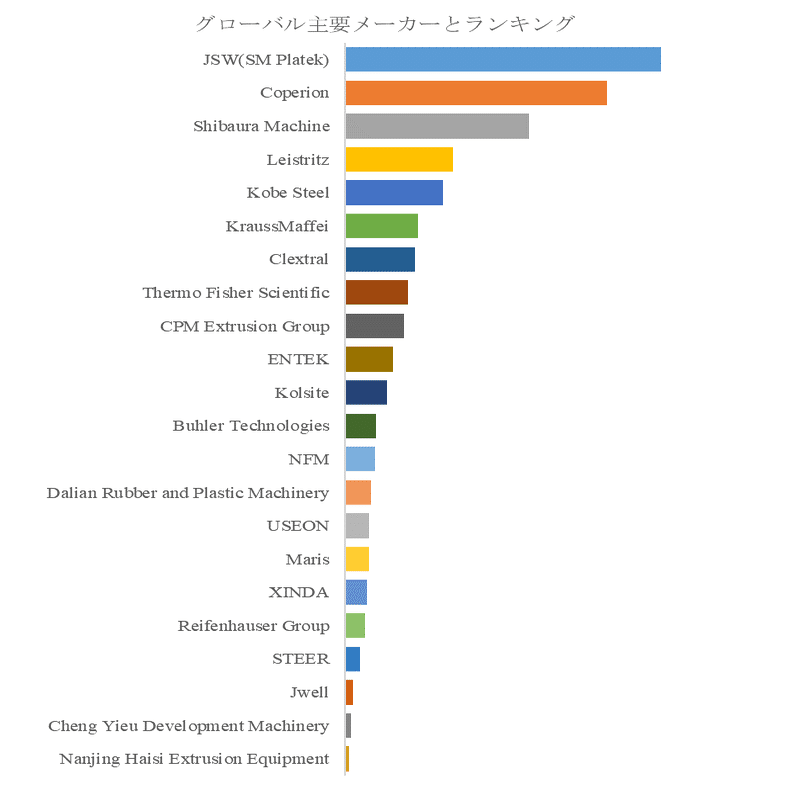 企業別では、JSW(SM Platek)、Coperion、Shibaura Machine、Leistritz、Kobe Steel、KraussMaffei、Clextral、Thermo Fisher Scientific、CPM Extrusion Groupなどがグローバル市場をリードしている。各社は、独自のスクリュー設計、耐摩耗性材料、高精度制御技術を競争軸とし、特定用途向けのカスタマイズモデルや、省エネ・環境対応機を開発して差別化を図っている。また、顧客サポートや保守・教育サービスの充実も競争力強化の重要要素となっており、単なる機械供給ではなく、製造プロセス改善や製品品質向上を含むソリューション提供型のビジネスモデルが定着している。これにより、地域や業界特性に応じた市場戦略が展開され、企業間競争と市場拡大を同時に促進している。